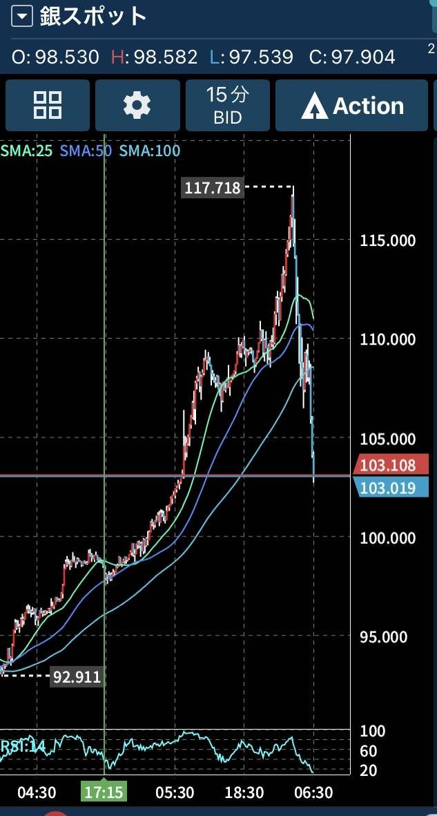 ちな売りでロスカットされた後数時間後にシルバー暴落した模様