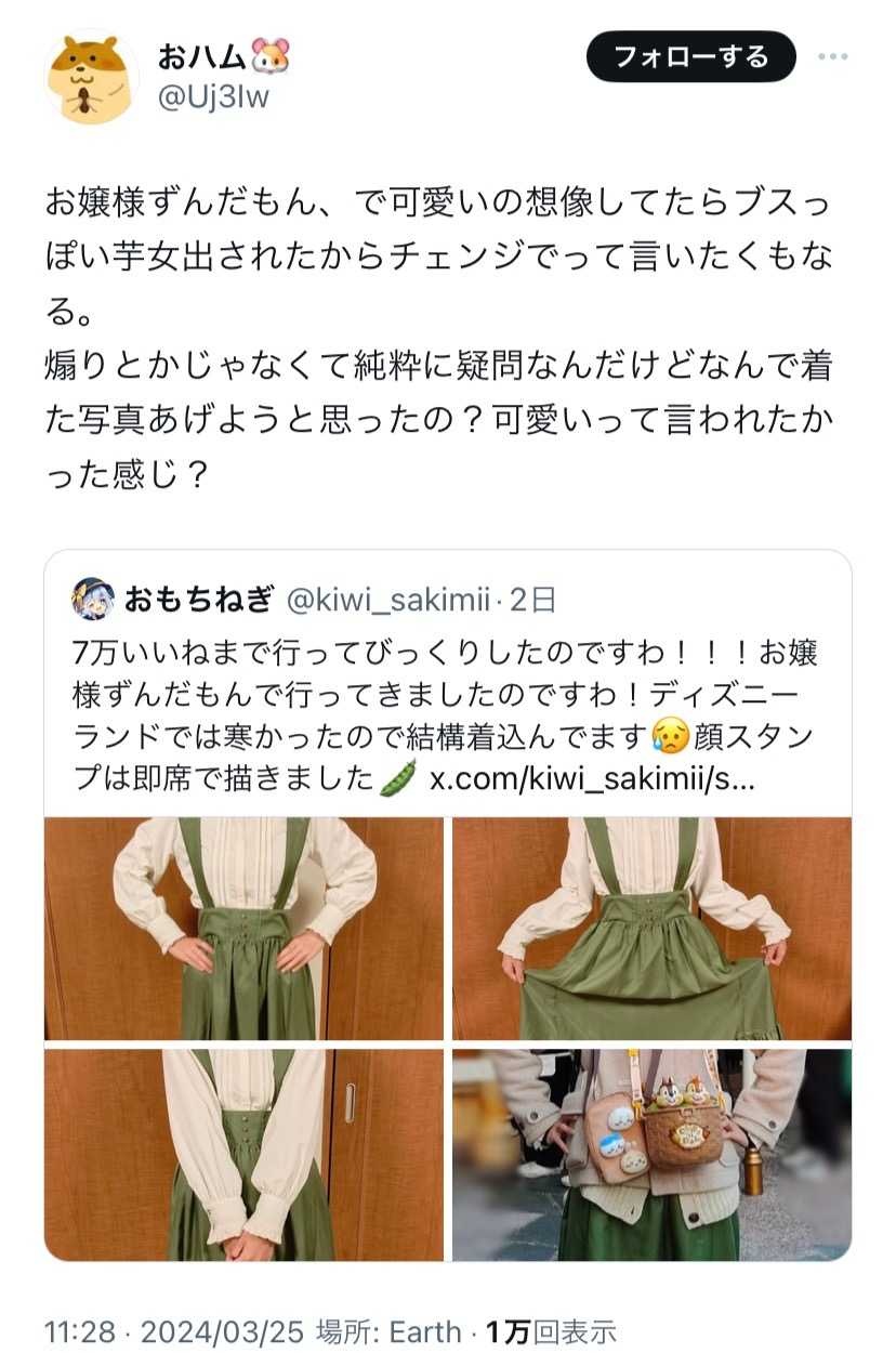 勝手に女子のファッションにダメ出ししてくるチー牛は存在します