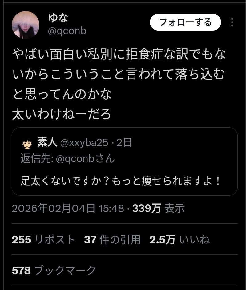 痩せててイイねって褒めても駄目だろこんなん