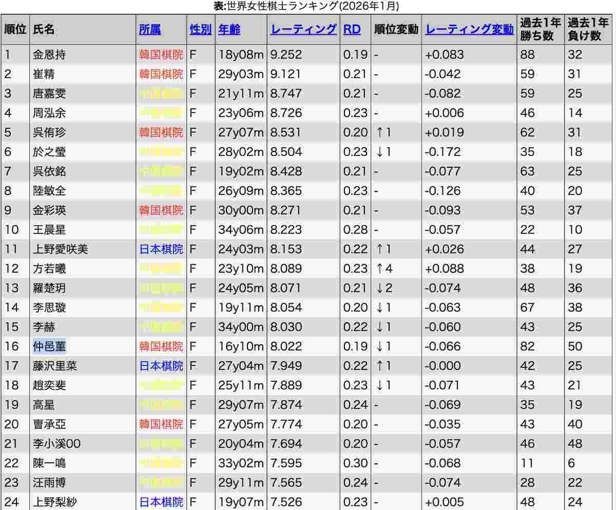 上の方にもそこそこ日本人おるやん仲邑菫より上にも1人おるし