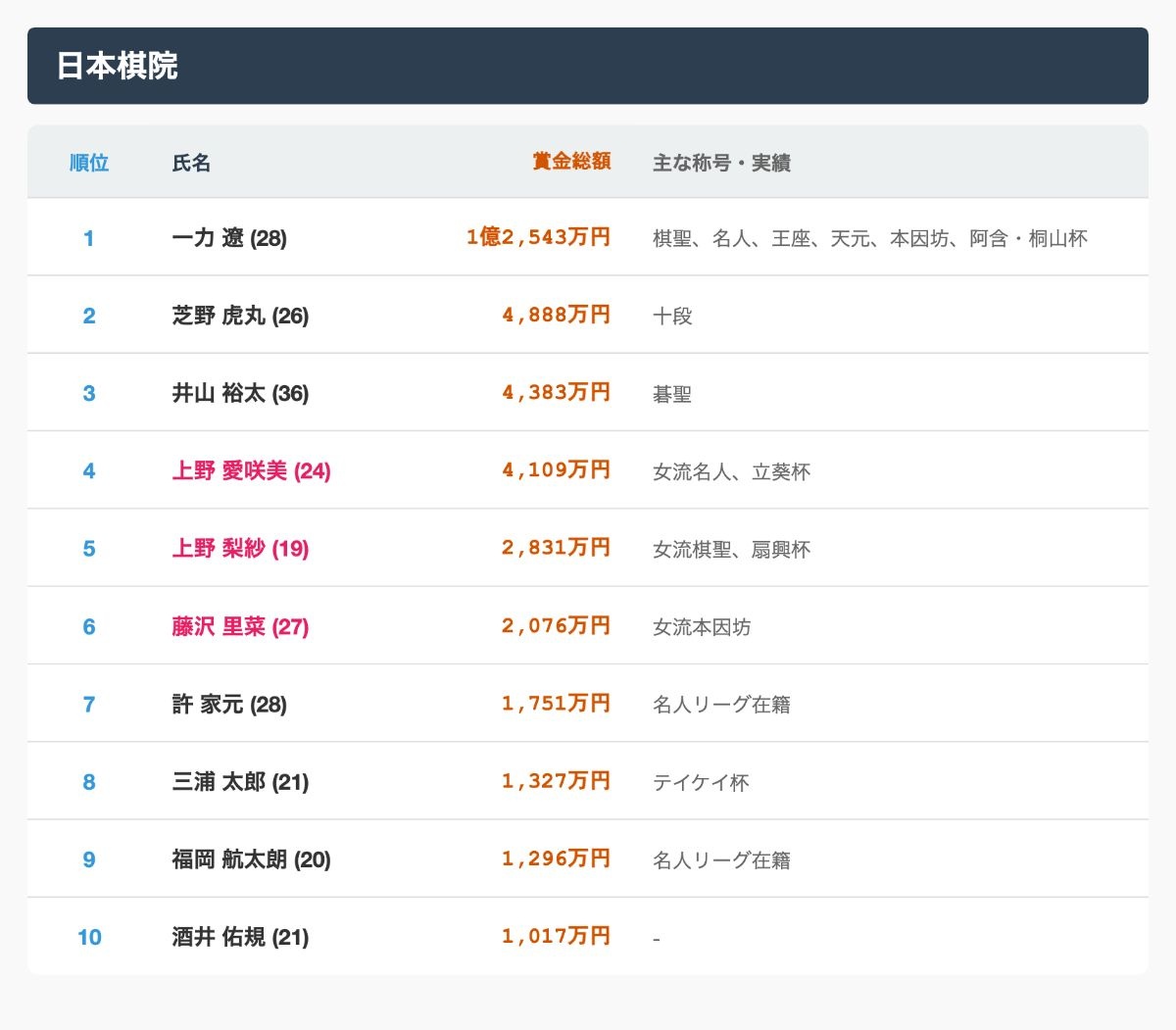 本因坊だけ知ってるけどそんなショボいんか…