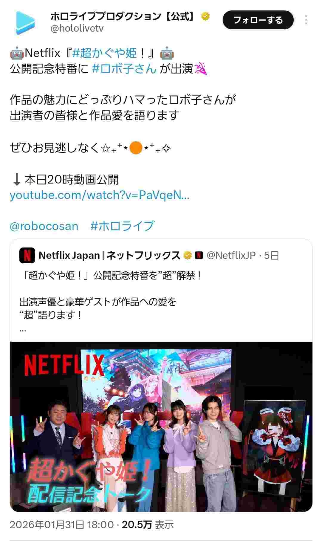 かぐや姫をやたらと絶賛していたロボ子さんを特別番組に招待してる事実も発覚しステマの答え合わせ完了へ