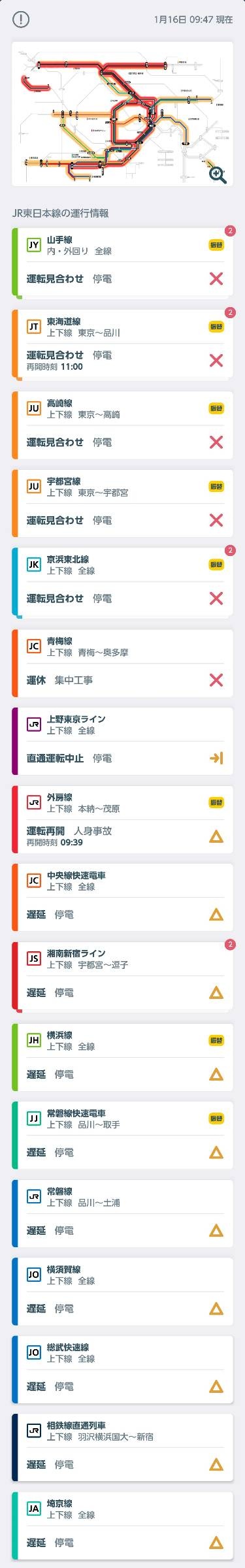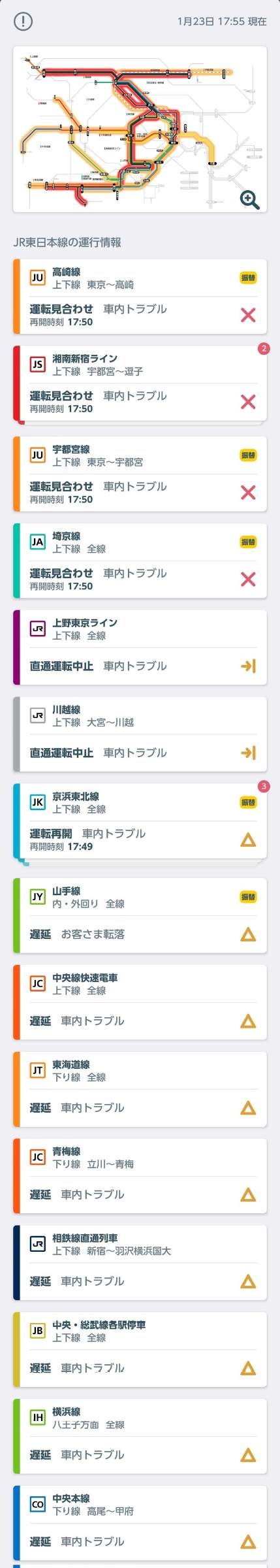 湘南新宿ラインで人身、埼京線でイオン、山手線でお客様救護、混みすぎて京浜死亡
