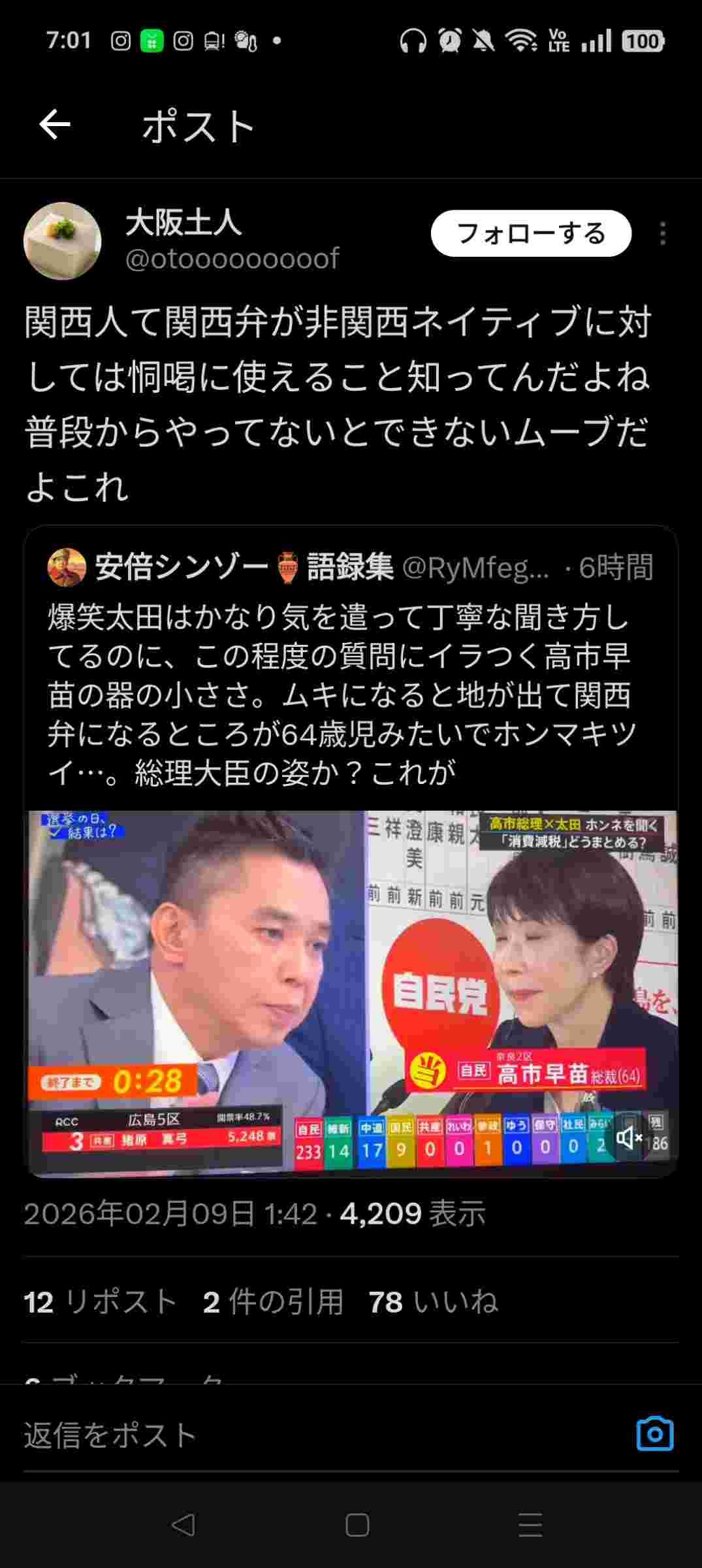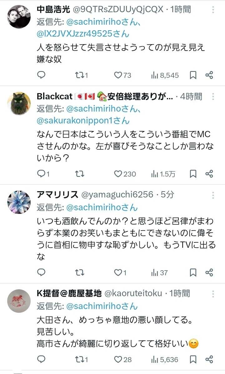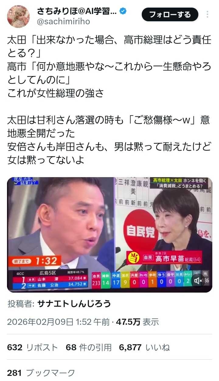 爆笑太田はかなり気を遣って丁寧な聞き方してるのに、この程度の質問にイラつく高市早苗の器の小ささ。ムキになると地が出て関西弁になるところが64歳児みたいでホンマキツイ⋯。総理大臣の姿か?これが