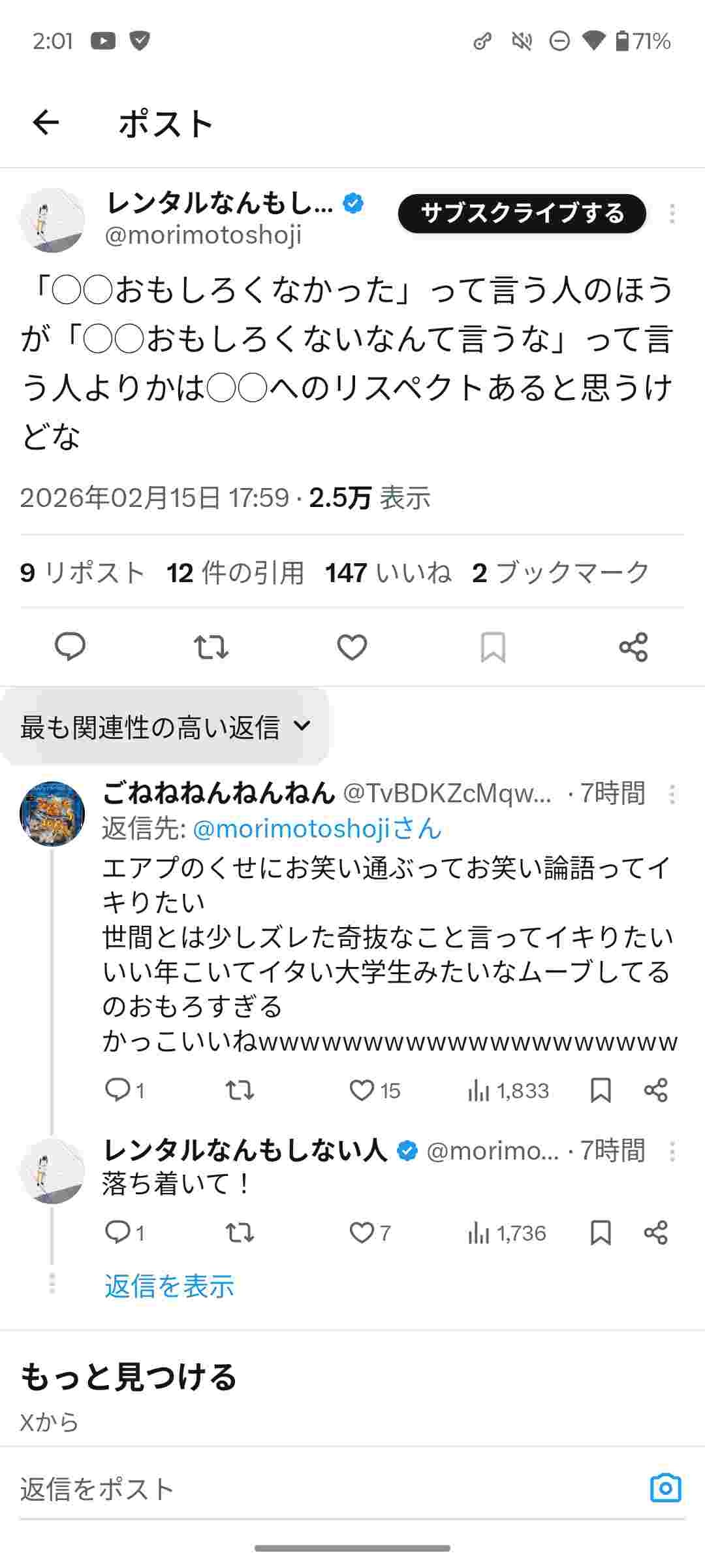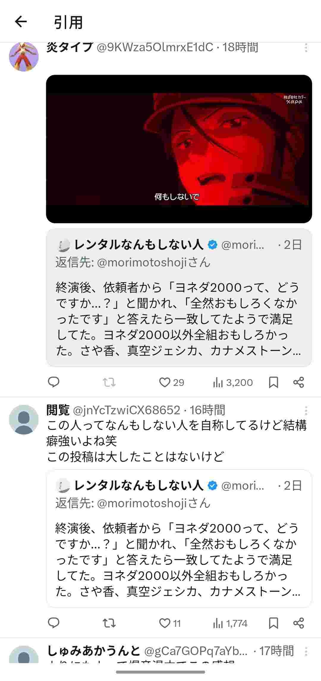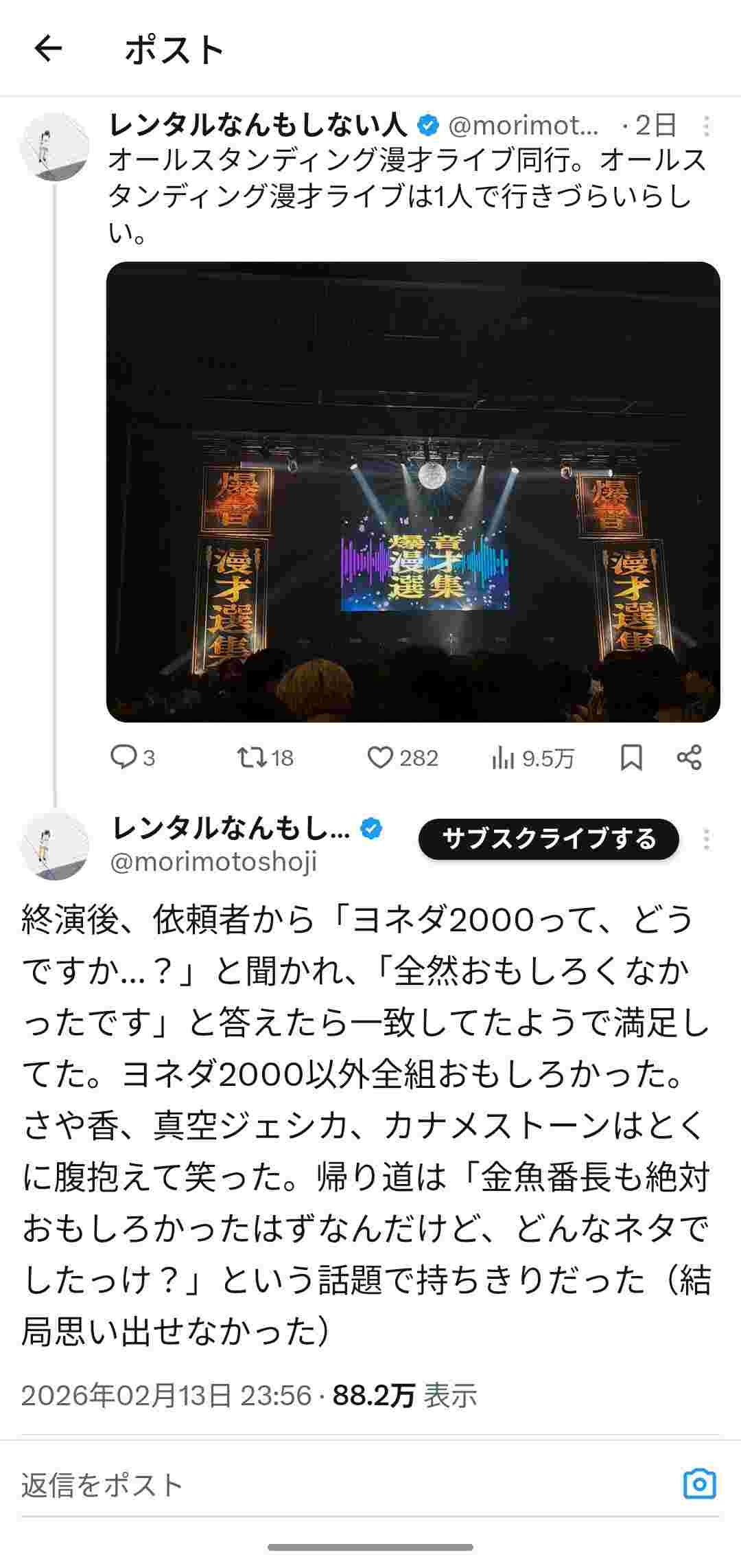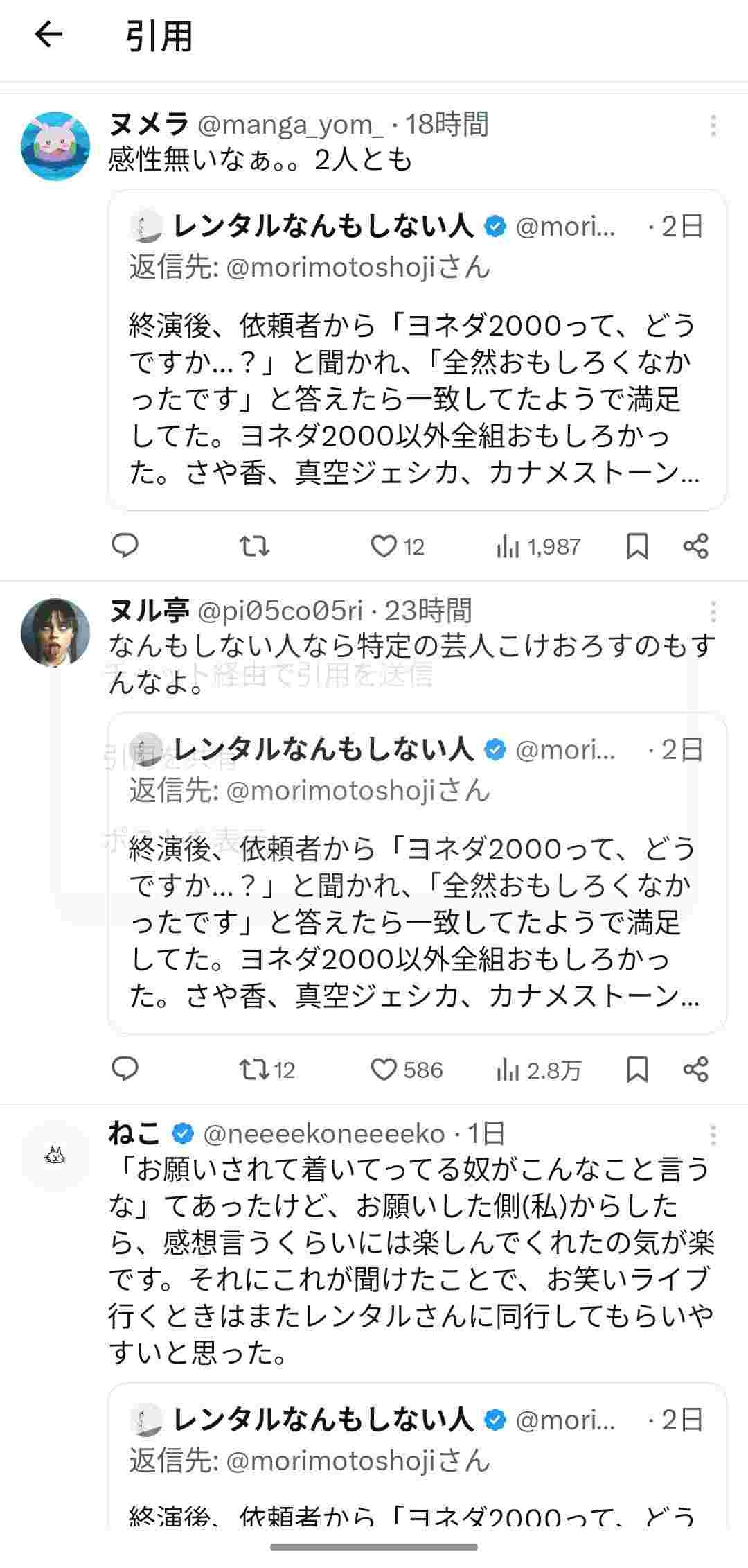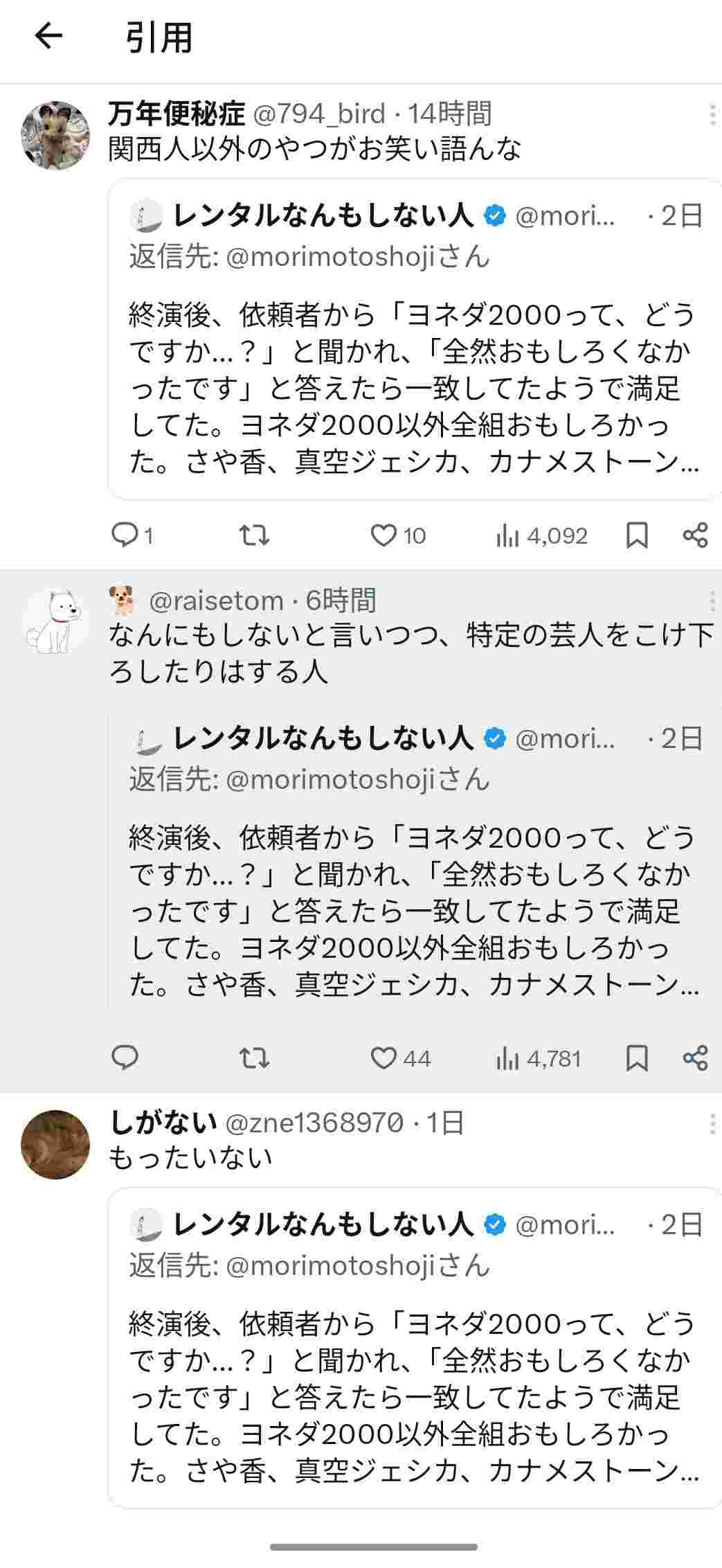 レンタルなんもしない人さん、お笑い芸人の「ヨネダ2000」をつまらないと評して炎上してしまうwww