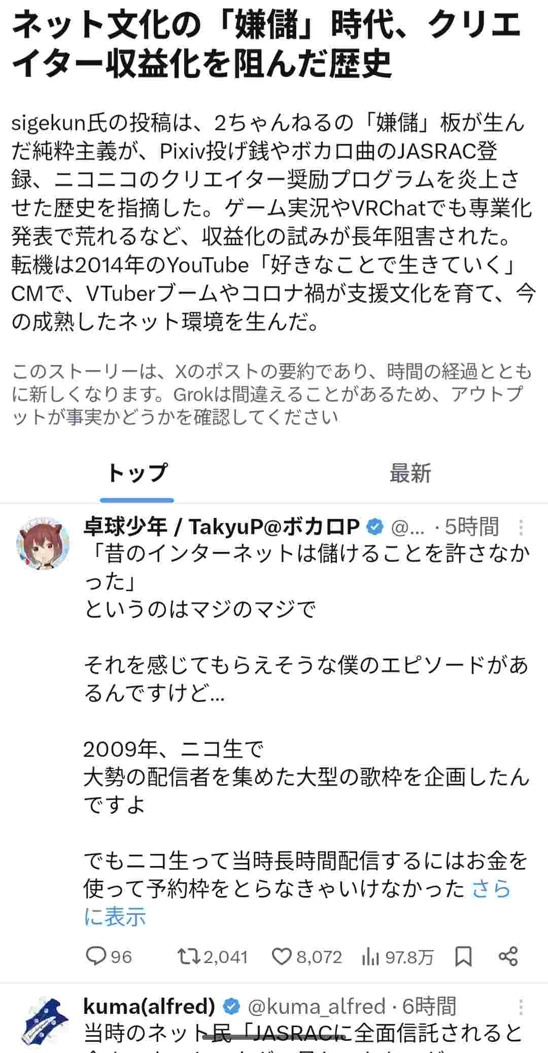 Youtuberの躍進、Vtuberの投げ銭文化がネットの嫌儲文化を終わらせたという意見が多い