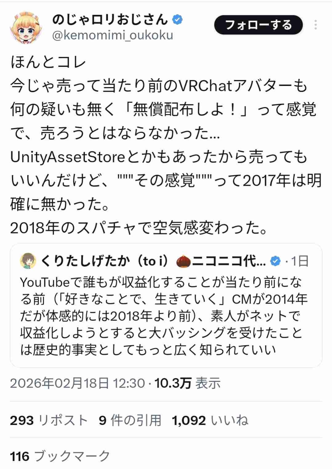 どんな人気コンテンツでも「でもこいつ儲けてるんだよな、金持ちなんだよな」って思いがチラついて楽しめんわ