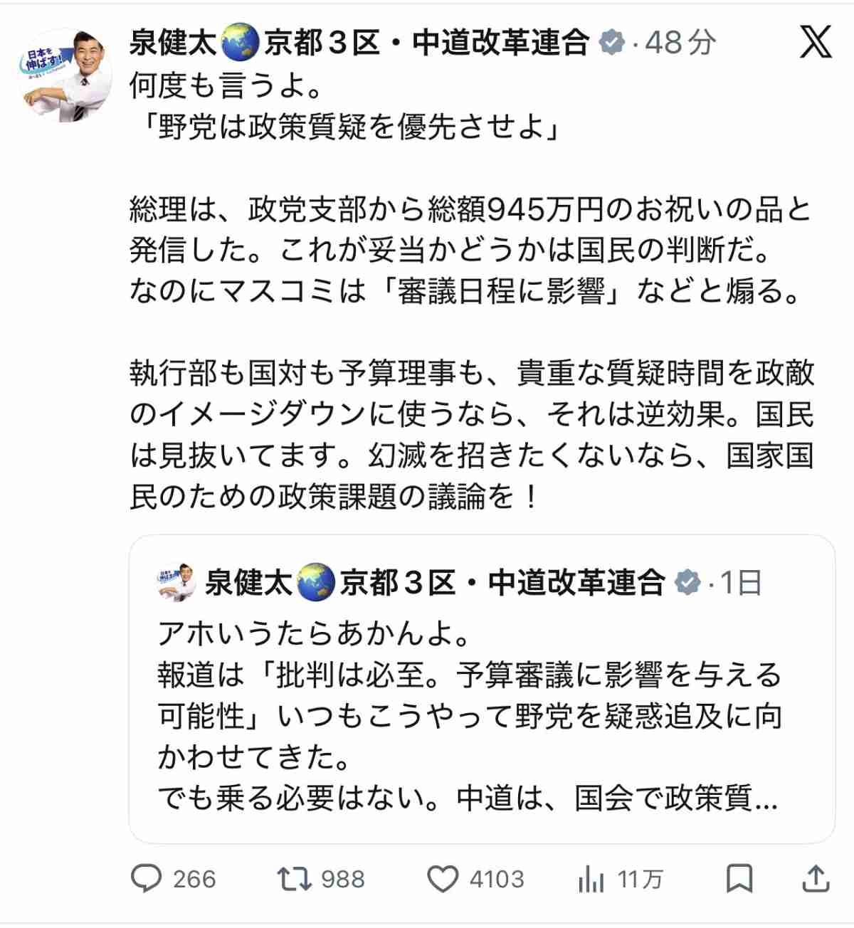 泉健太🌏️京都3区・中道改革連合 @izmkenta (2026/02/25 09:43:08)
