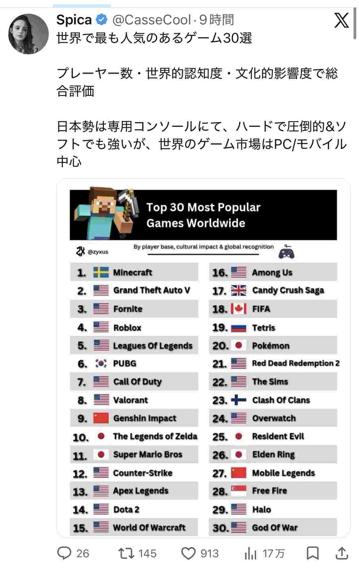 人気の定義が分からんけど売り上げならマイクラだし賞金ならdota、同接ならLOLやろ