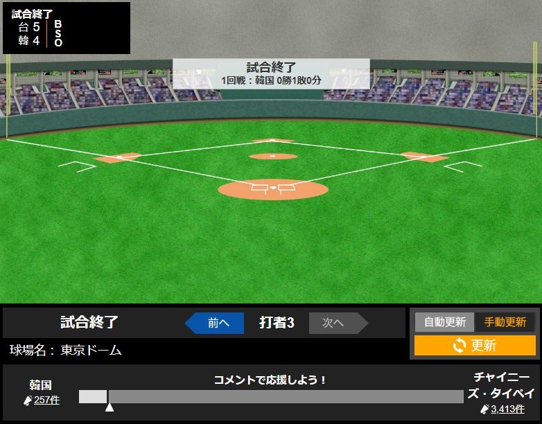チェコと台湾の時はチェコ応援コメントの方が多かった
