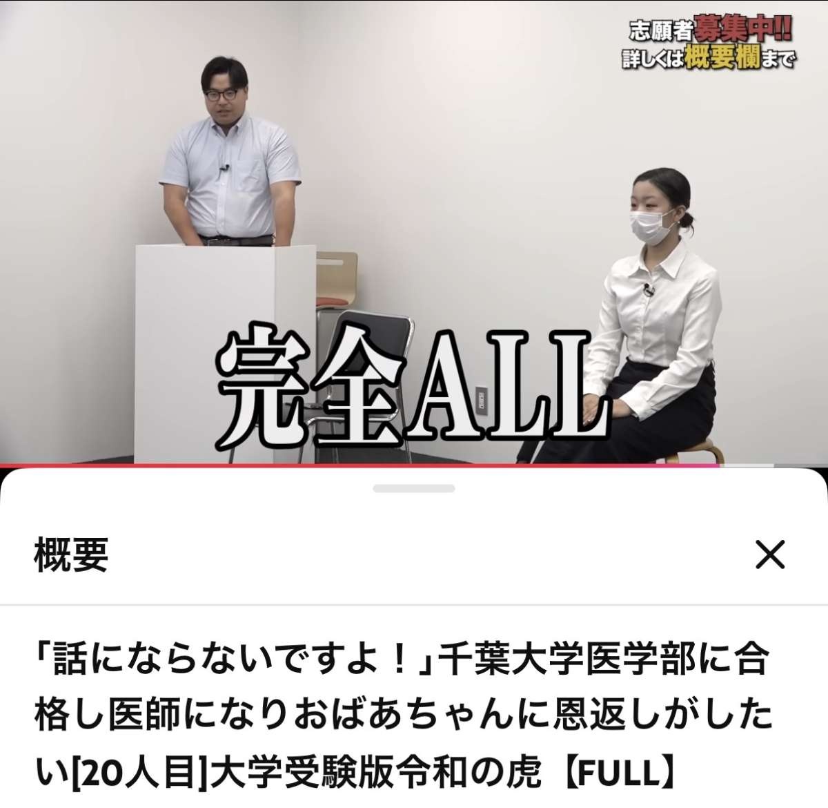 華山田さんは昨年8月、千葉大学医学部合格を目指す志願者として令和の虎Youthに出演しました。病気の祖母のために医師になりたいという思いを語り、虎たちの心を動かして全額支援の“オール”を達成。