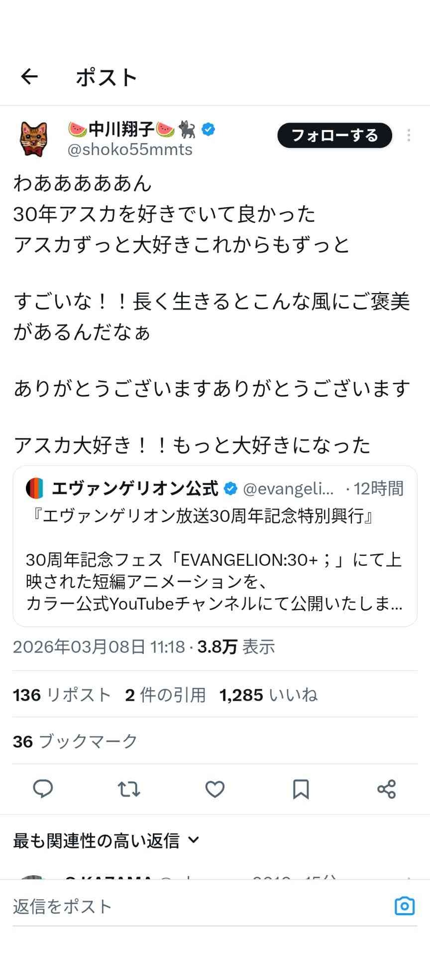 エヴァンゲリオンぜんぜん見たことけど30年も前にはまだないだろ草
