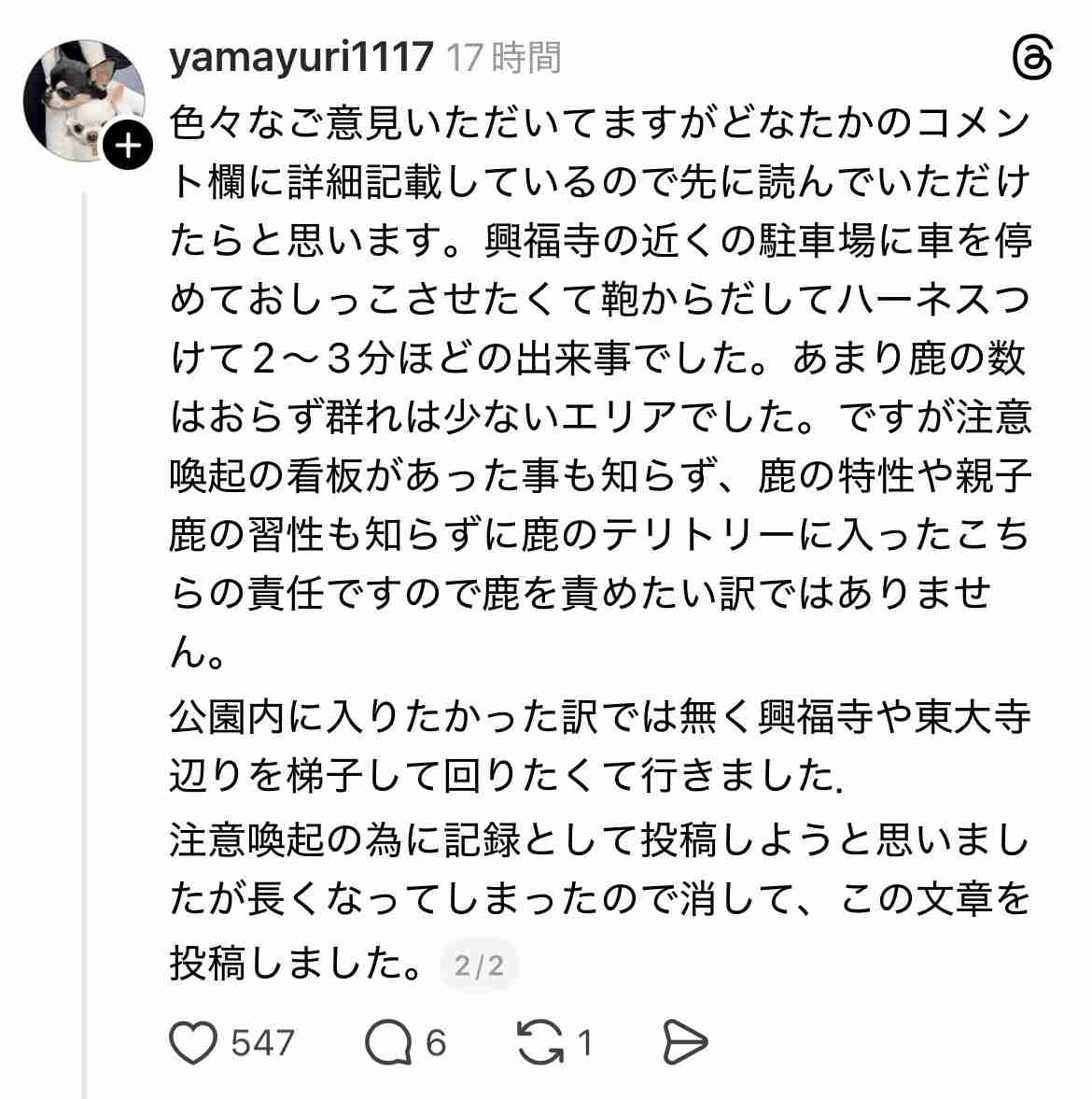 【訃報】奈良の鹿さん🦌チワワを1killwww