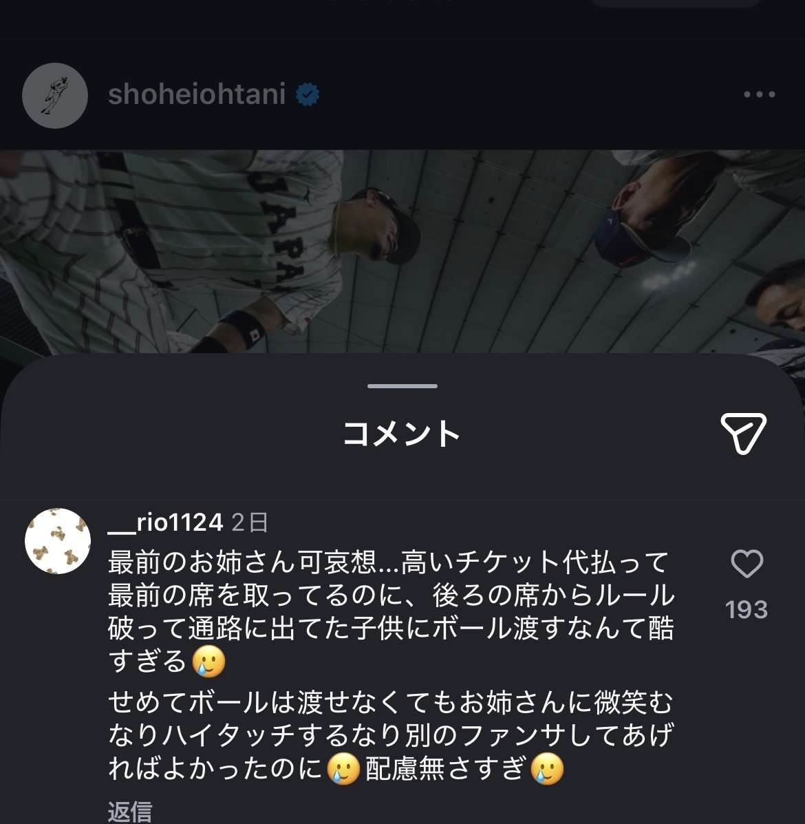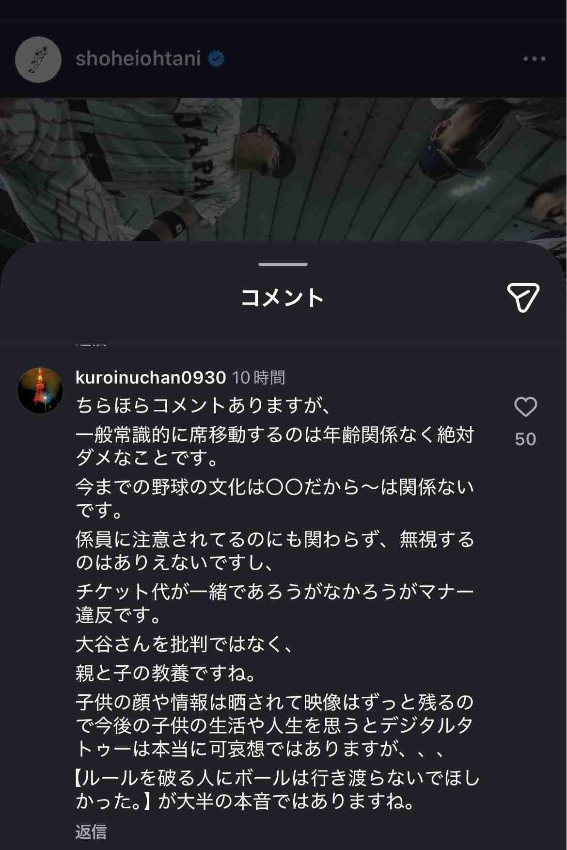大谷が席移動とか知るわけないやろ、観戦ルールの話を大谷のインスタでやるな