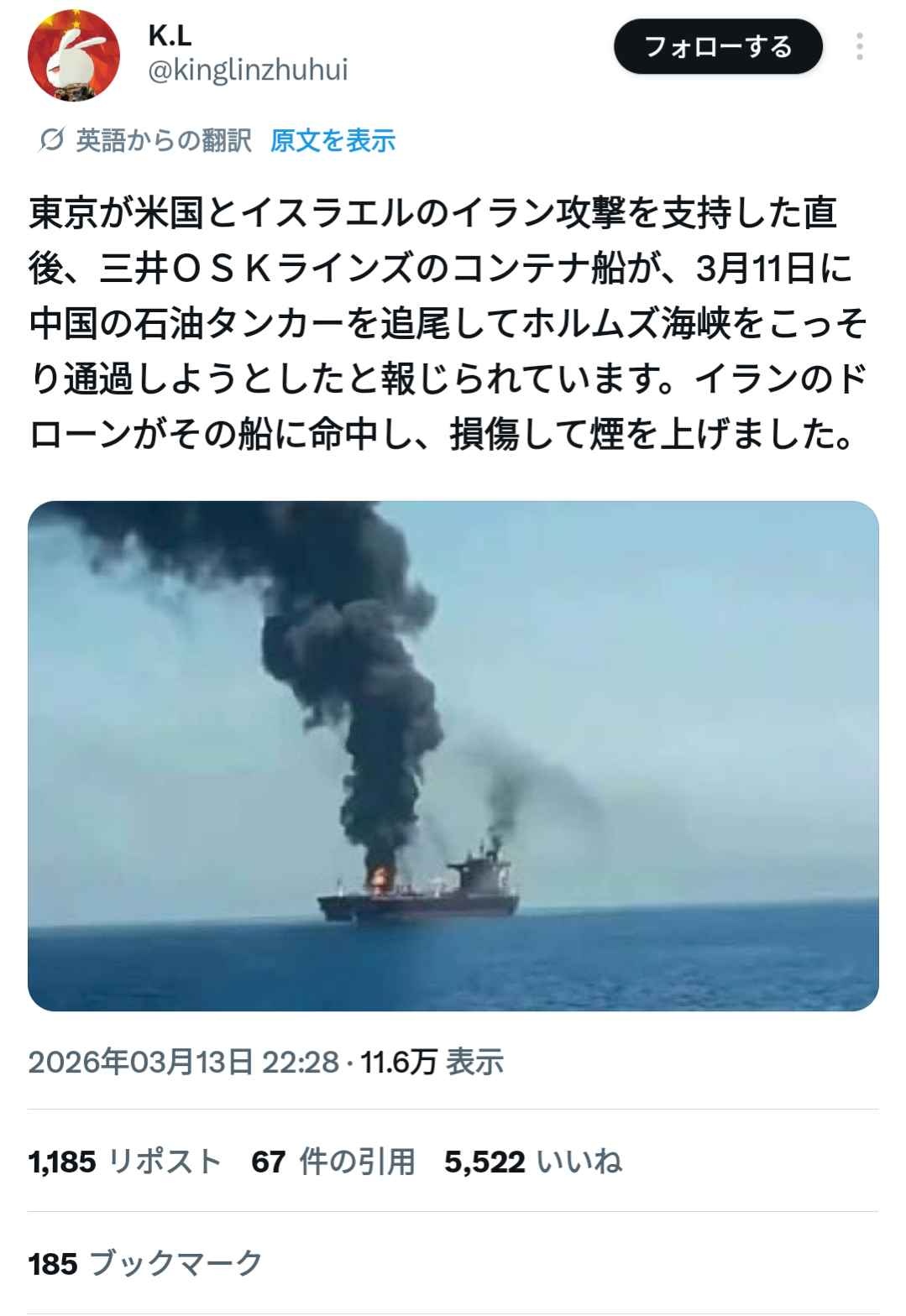 攻撃された船ってこれか?