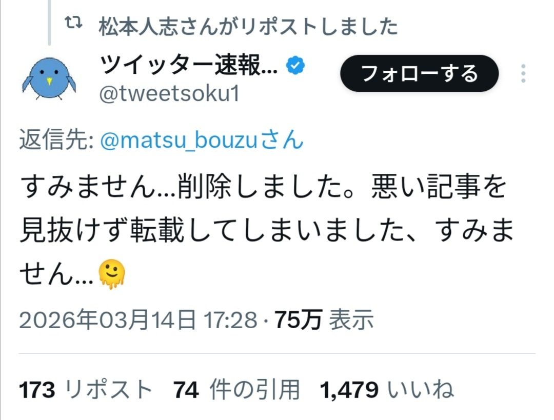 え、このすいませんツイートもまっつんリポストしとるん?