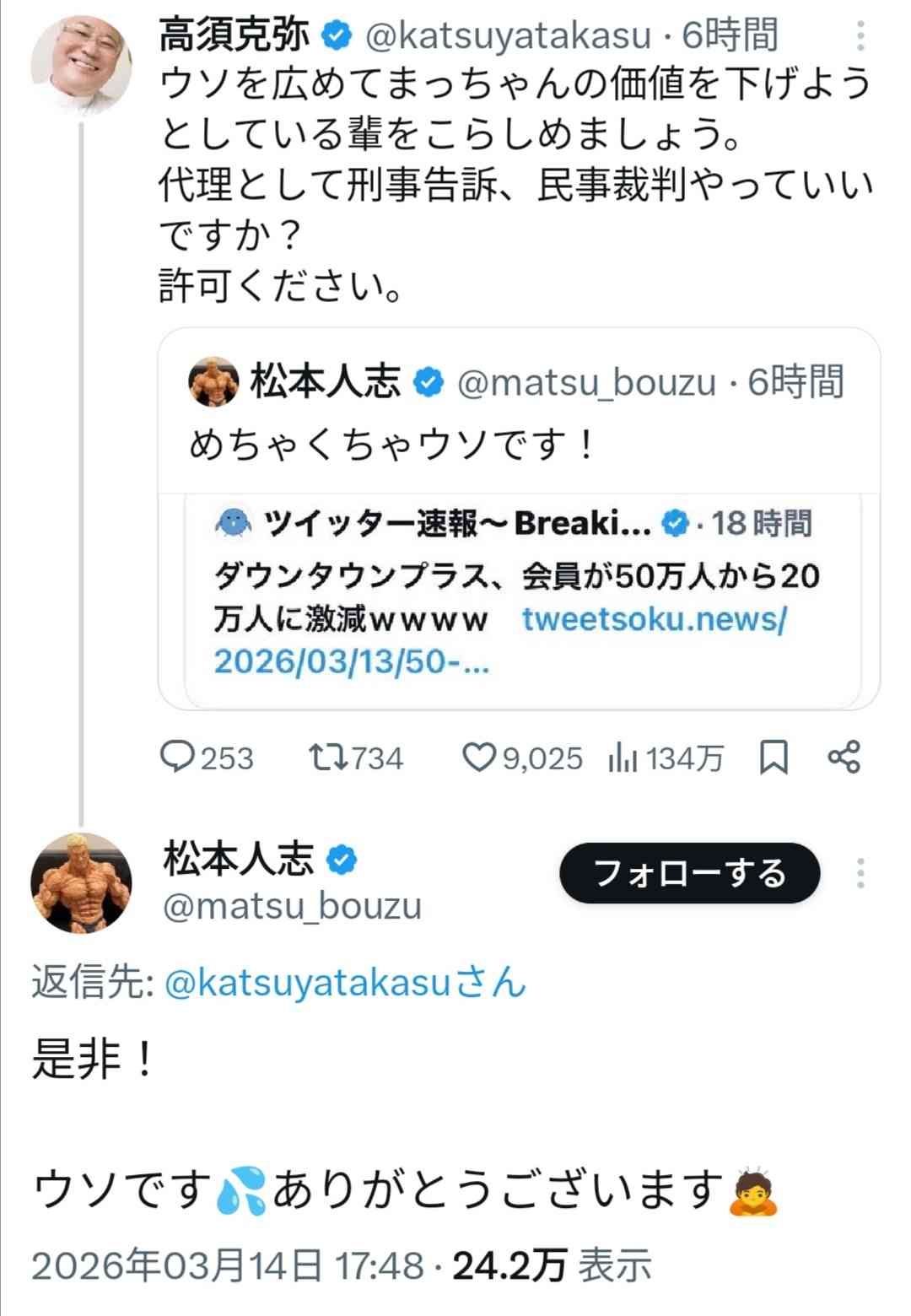 松本と高須ってどっちの方が金持ちなん?