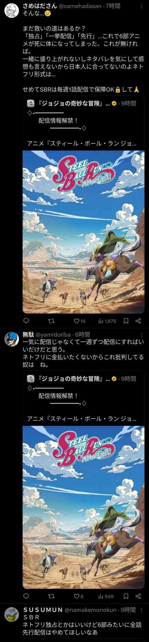 ジョジョ6部はネトフリ独占配信やから全く盛り上がらなかったんや