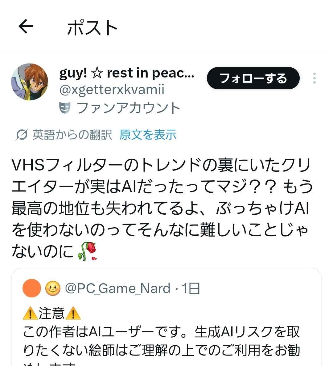 これとは違うけどクリエイターでもないのに反AIしてて