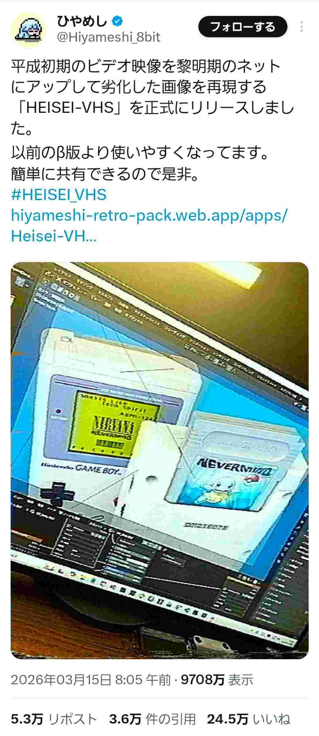 平成初期風に画像を加工できるツールが好評を得たが