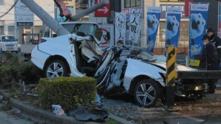 電柱にぶつかっただけでレクサスがここまで破壊されるか?