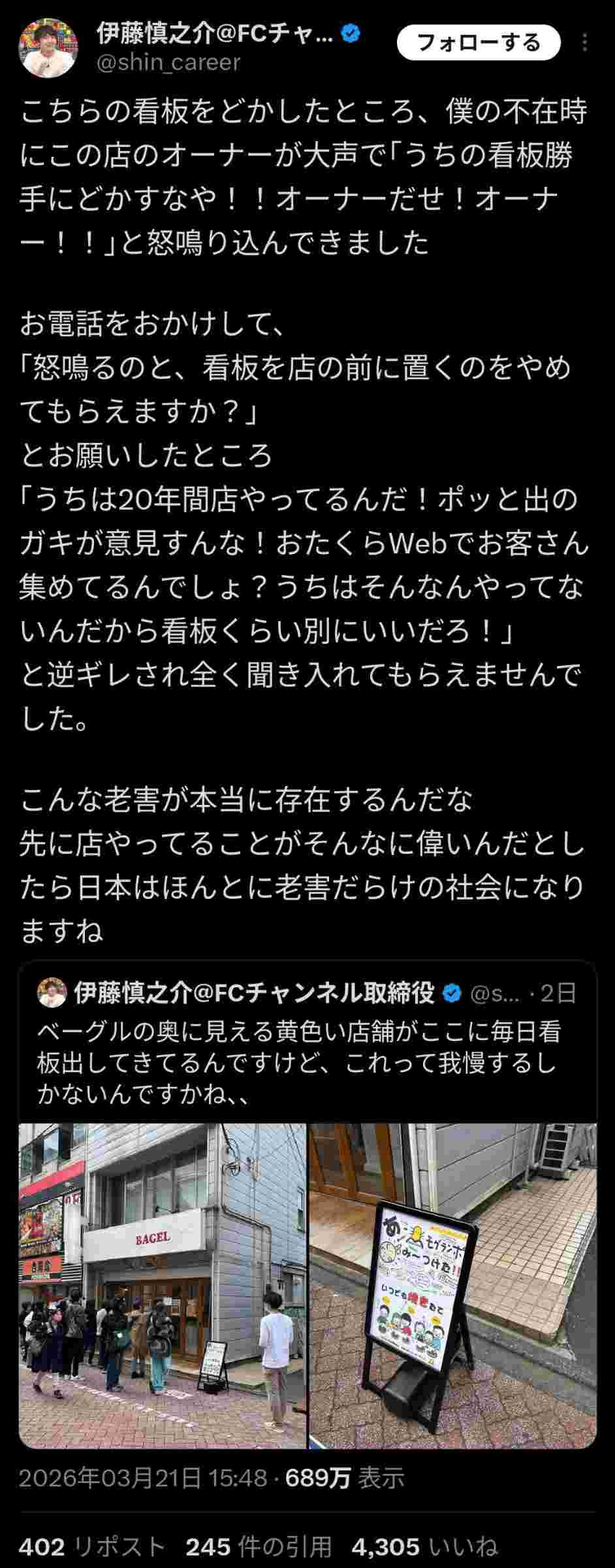 でも自分の顔と店の名前出して老害ツイートすんのは結構ヤバイやつやん