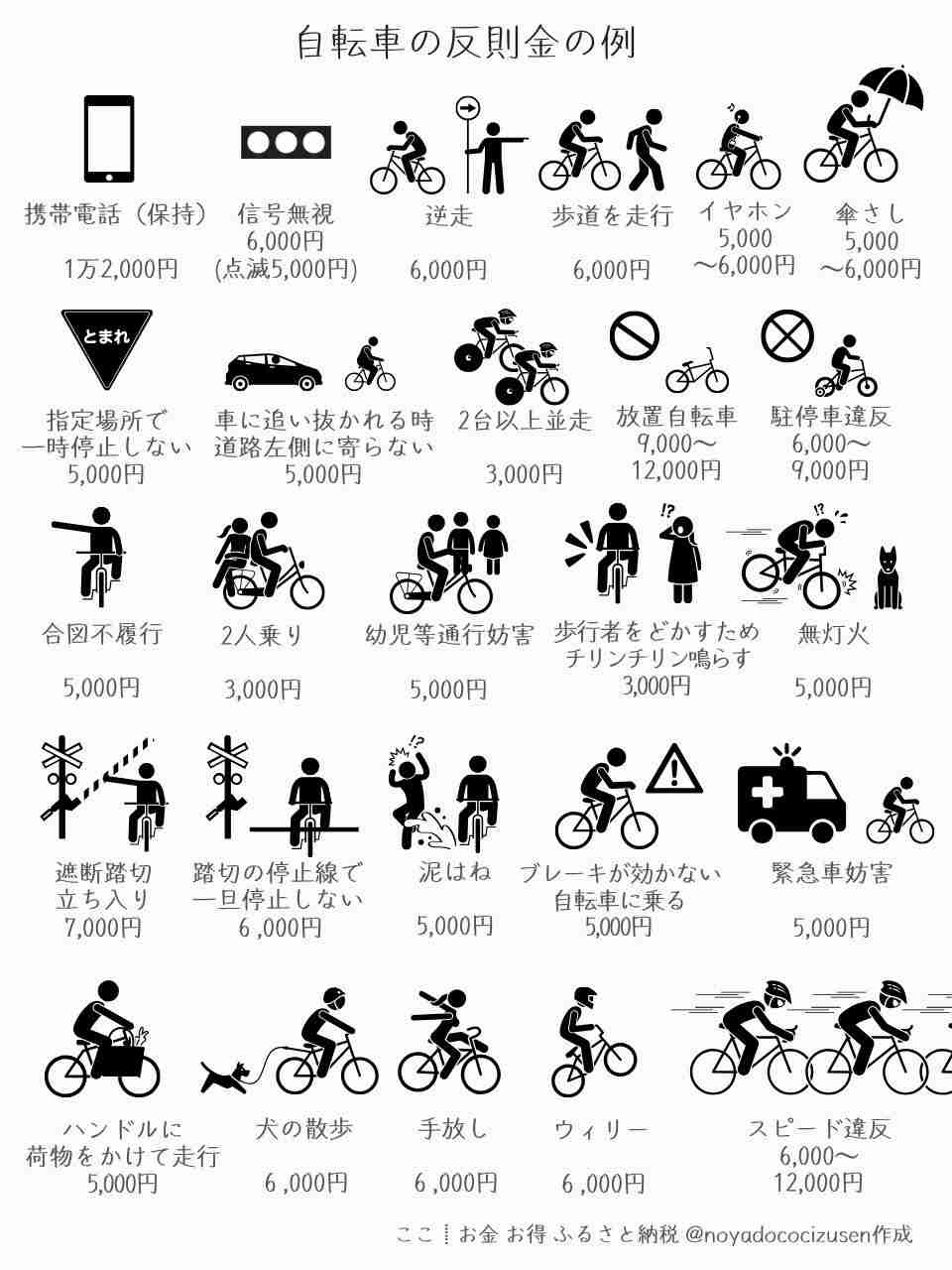 合図不履行、逆走、歩行者にベル鳴らしてどかそうとするで罰金大量発生やな