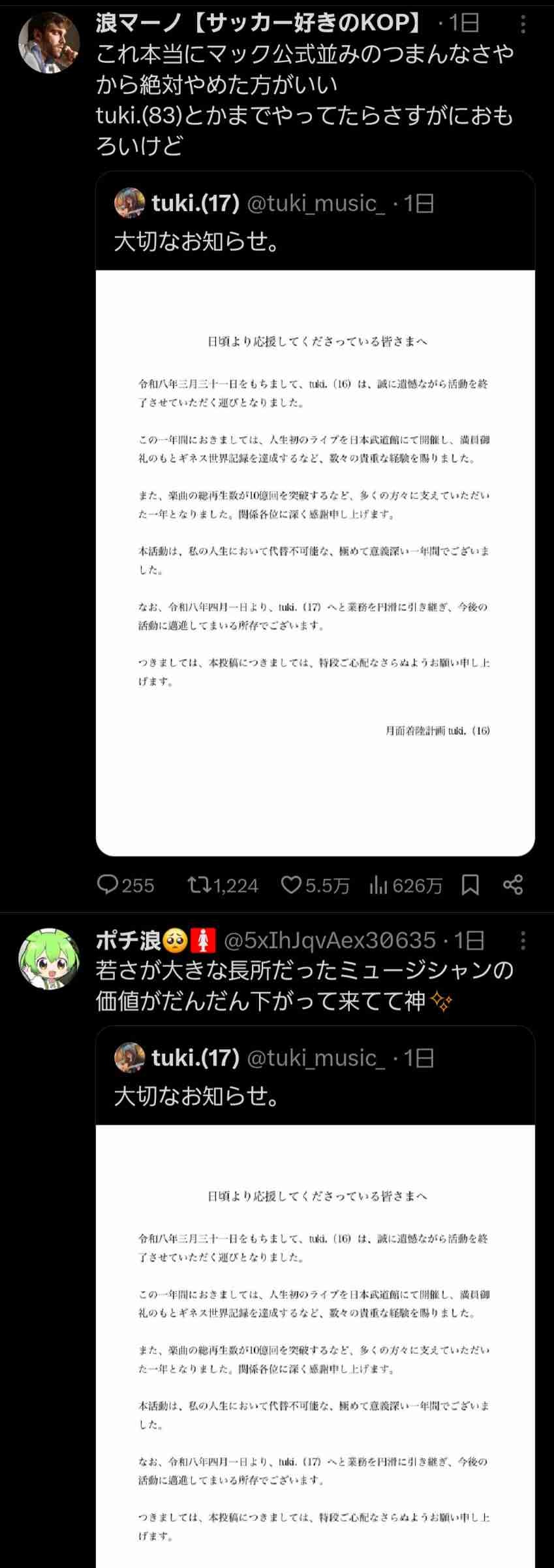 31日とかに散々引退系の嘘はやめとけってタイムラインに流れてたけど結局やるやつはやるよな