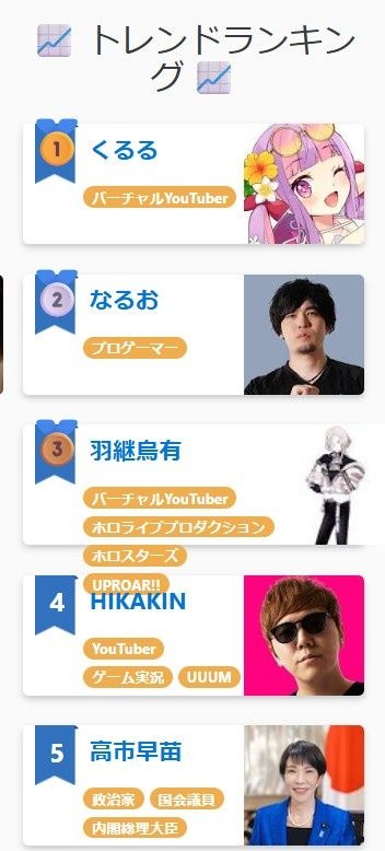 3位はホロライブの男版ホロスタのやつやな