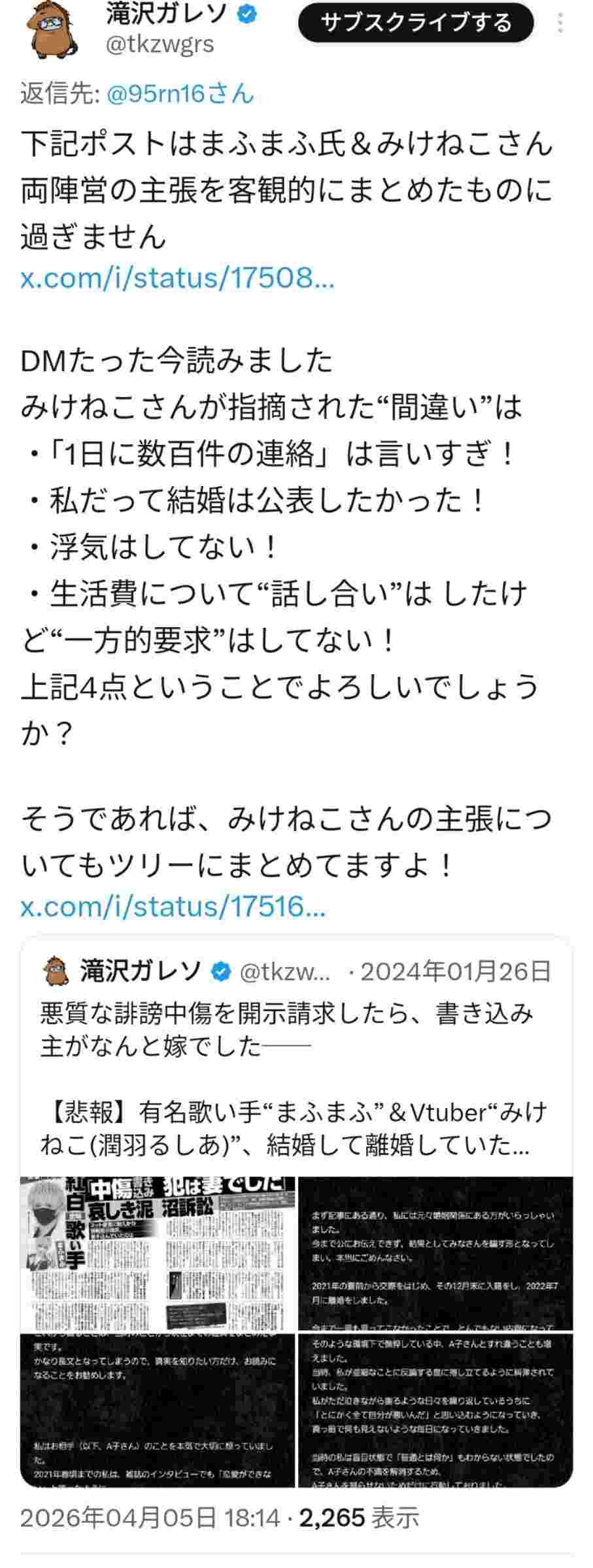 まふまふとみけねこって単にネット活動者同士の夫婦喧嘩やろ?