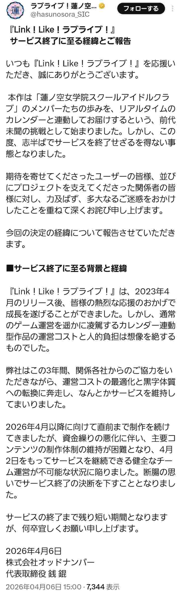 ほんまにようわからんタイミングで唐突なサ終やな