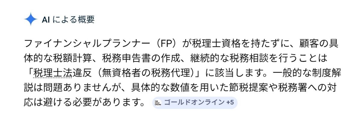 たとえ税務に詳しいFPであっても、税金に対する一般論を提案することしか認められていないのです。