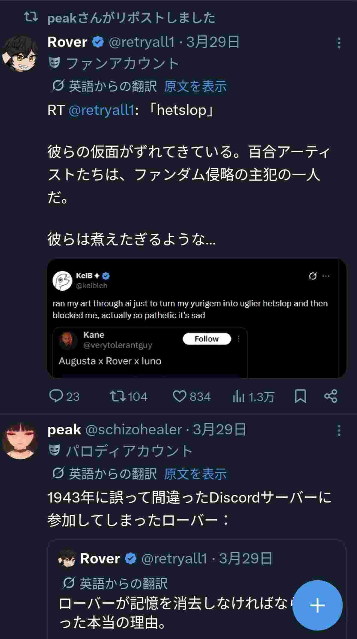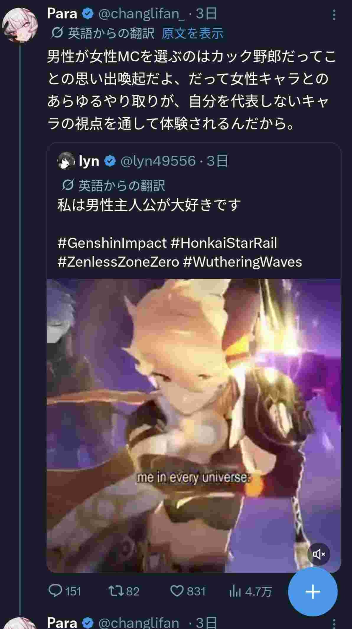 こいつは原神信者の他ゲーアンチやから原神百合貼りまくったり原神叩きの流れになると黙るか発狂するで