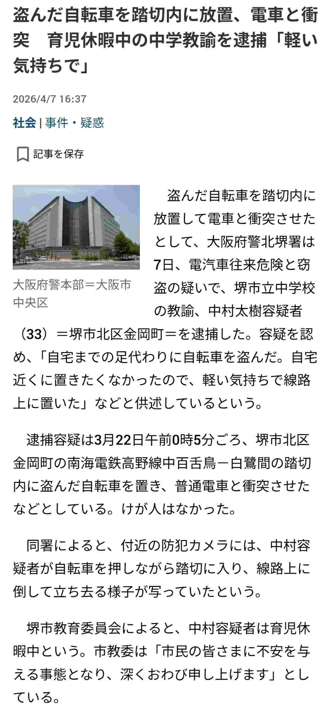 アホやな置き石でも数千万の賠償金請求される事あるのに盗んだ自転車線路に置くとかさ