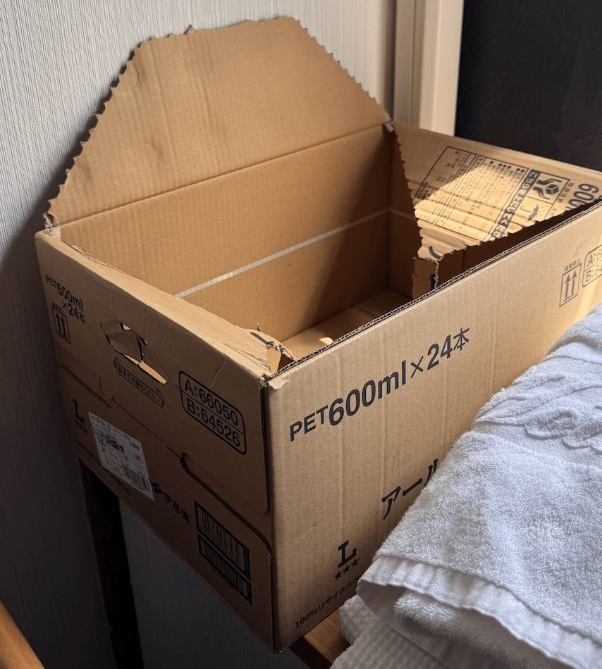 ローソンで拾ってきた段ボールに入れてんのかよ