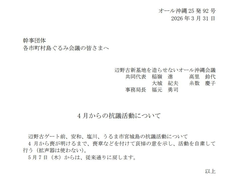 ちなみにGW明けからまた抗議活動再開するで~って通達出しとる
