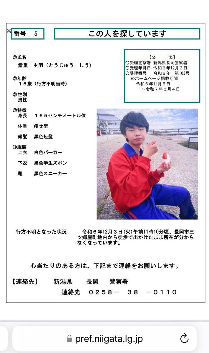 長岡で他にも男子中学生行方不明の張り紙してるけど見つからんのかな