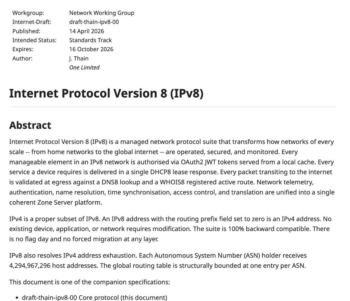へえー、IPv8ってのはIPv4と互換性あるんか