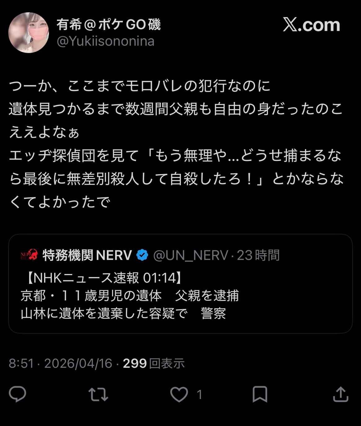 自覚ないだろうけどエッヂでXの話題出すやつも同レベルでキショいで