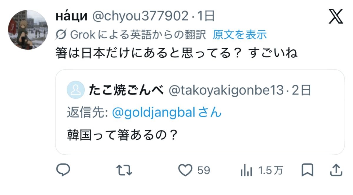 日本人「韓国って箸あるの?」→韓国人がちでブチギレw w w w w w w w w w w w w w w w w w w w w w