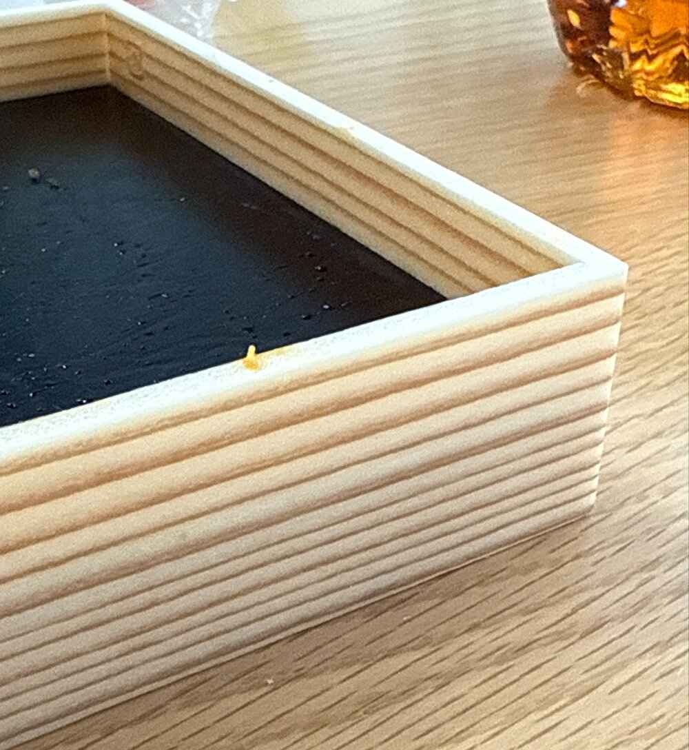 厚さ1cmくらいの米敷き詰めた一部底が見えるみたいな