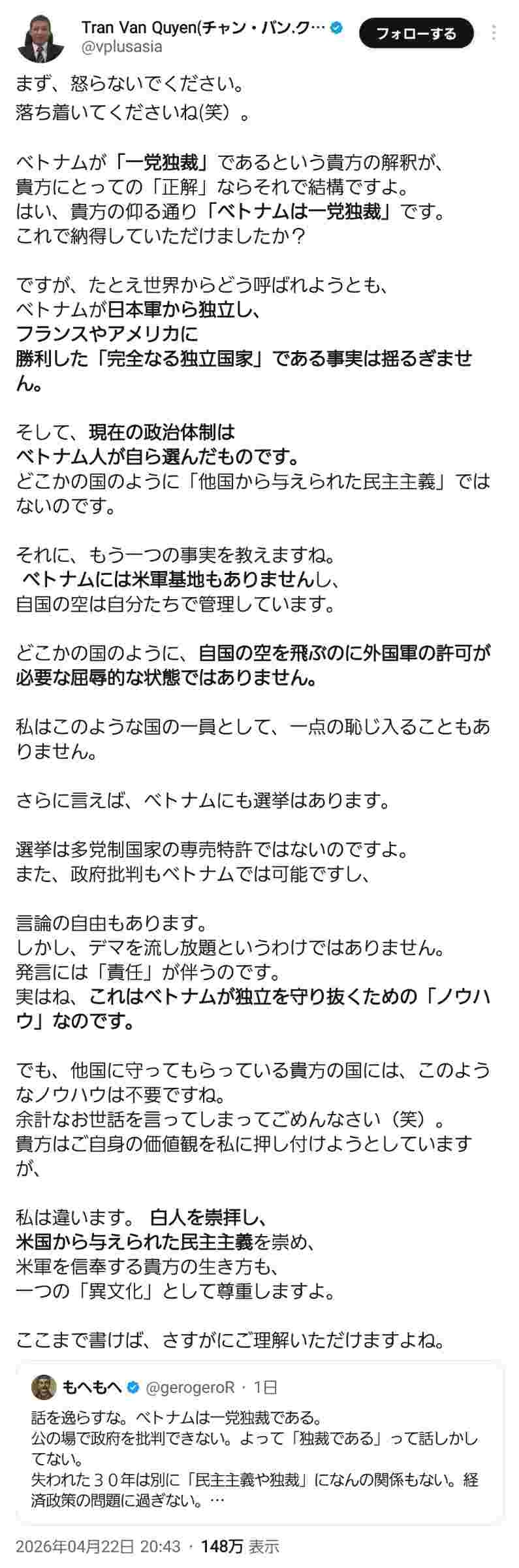 これネトウヨの勝ちやんベトナム人誤魔化してるね