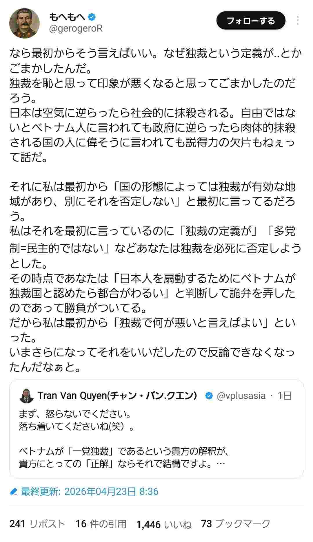 なんでネトウヨなのにアイコンスターリンなんだコイツ