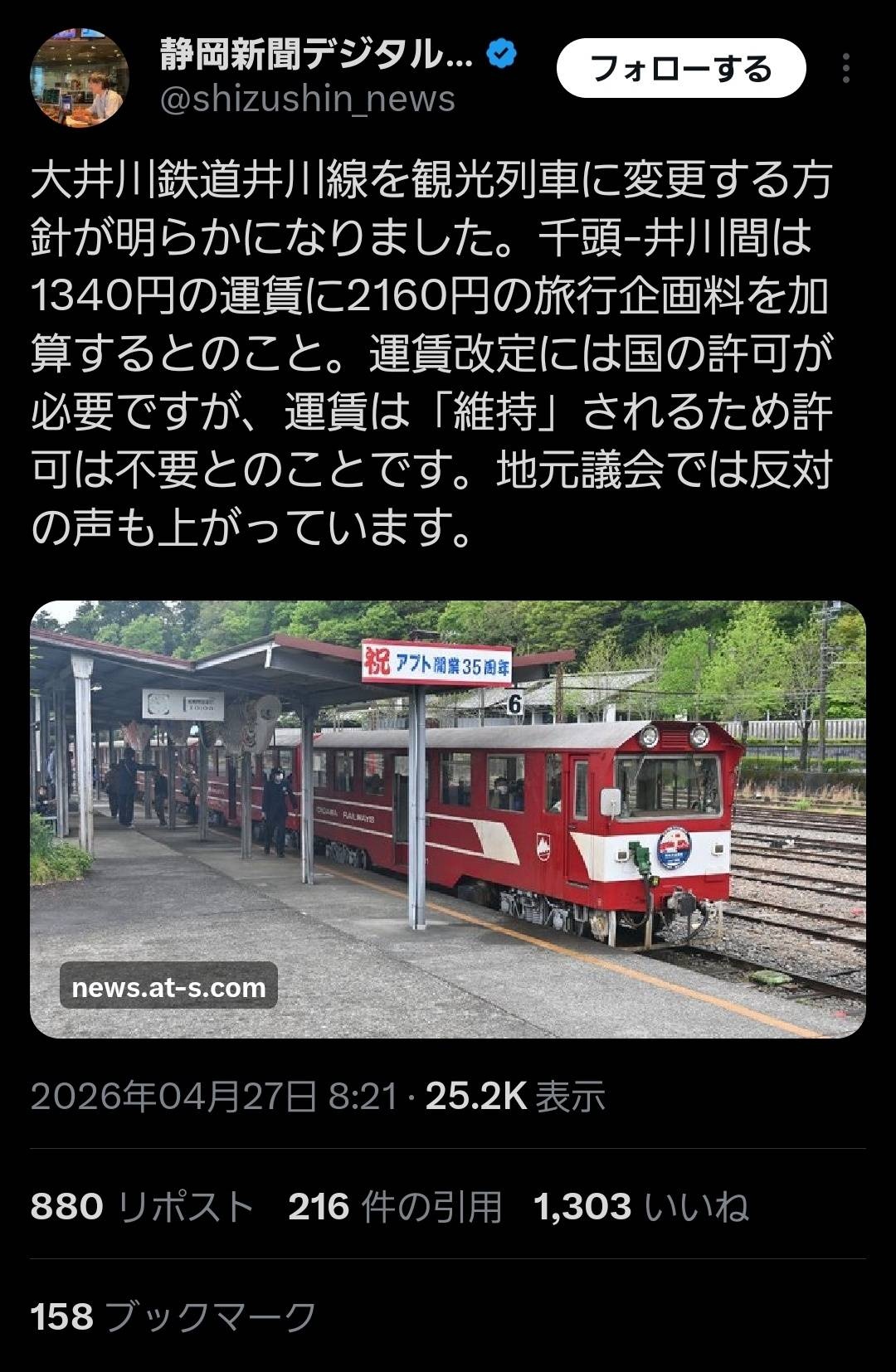 大井川は今も機関車走らせてるから維持費高いんちゃうん