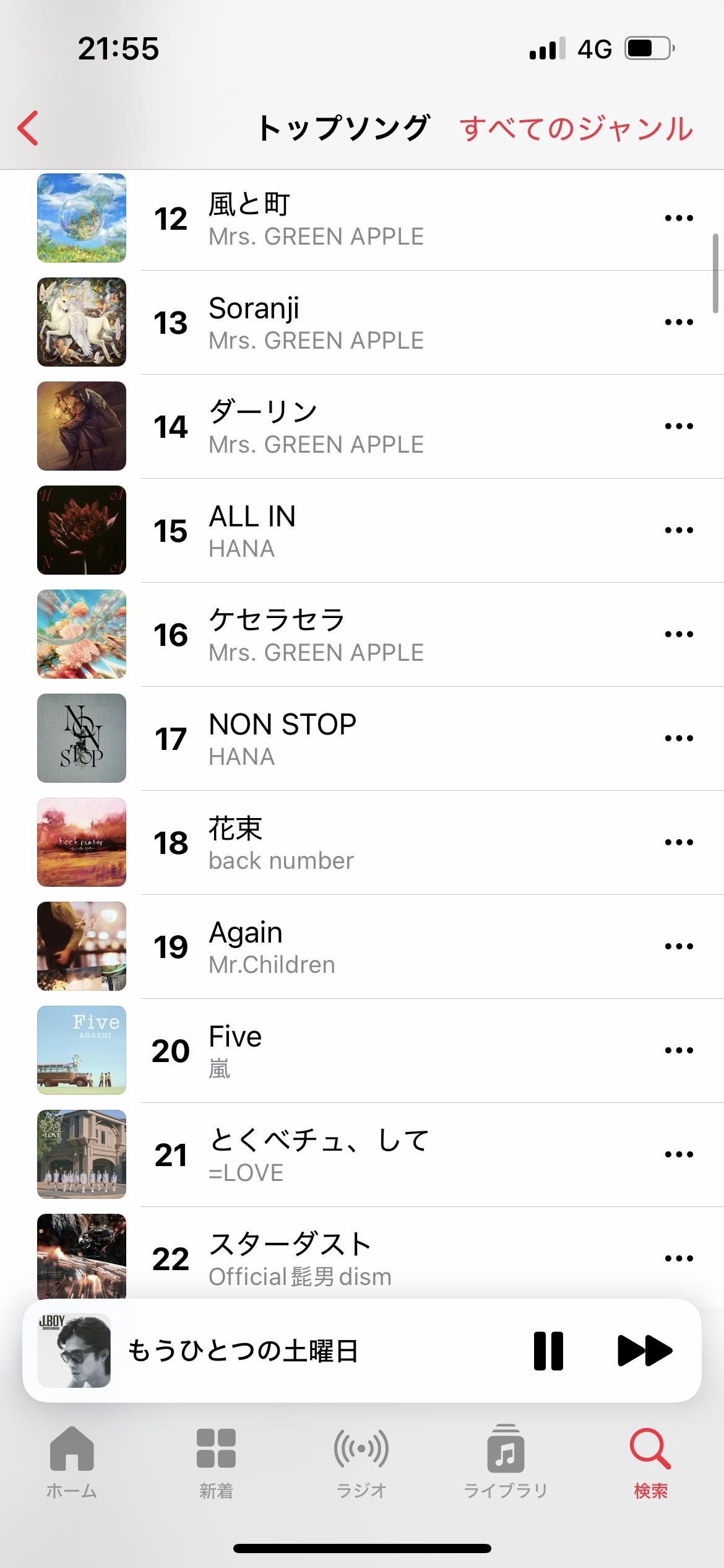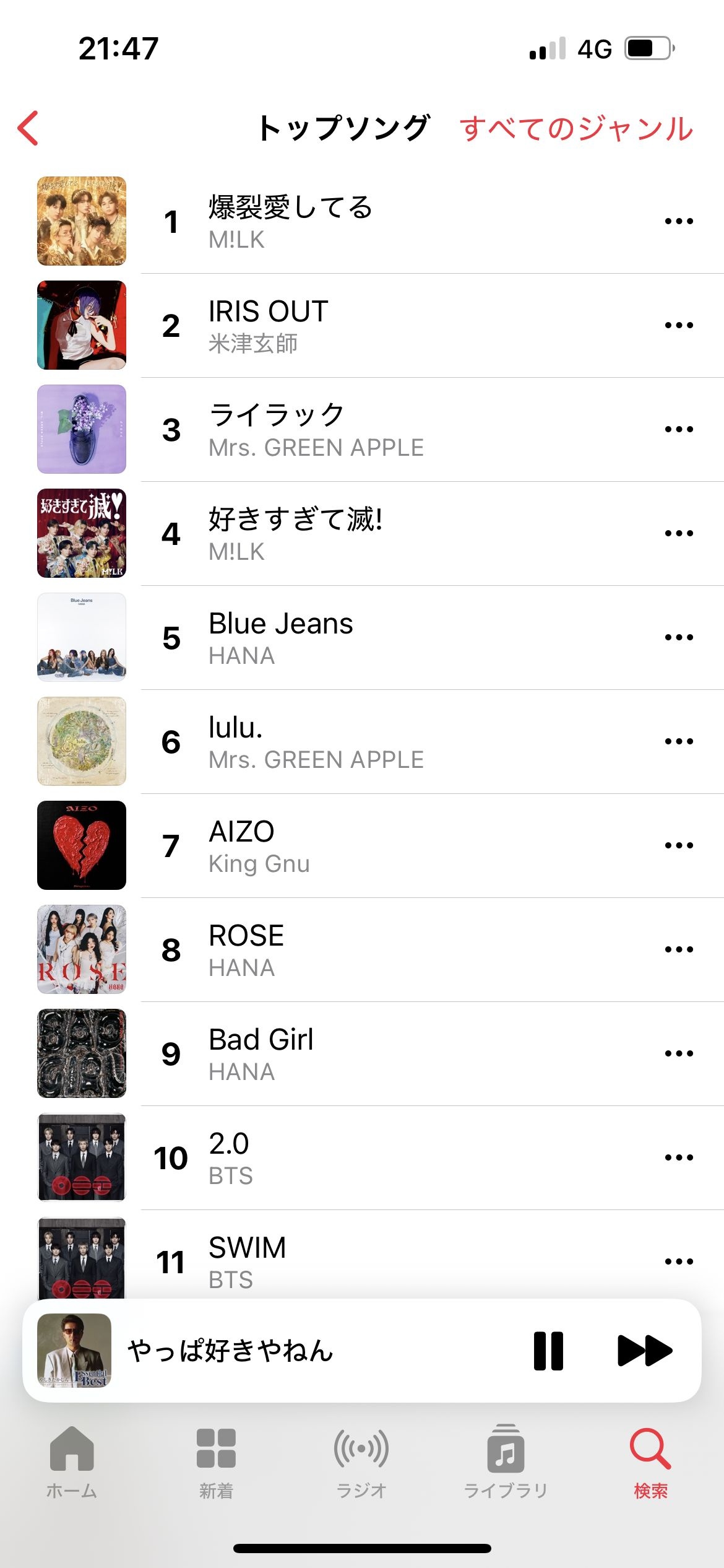 ヨネちゃんあいみょんキングヌひげだんYOASOBIが曲出すたびに争っててたまに別のヒット曲がランクインする時は邦楽復活したと思ったのに
