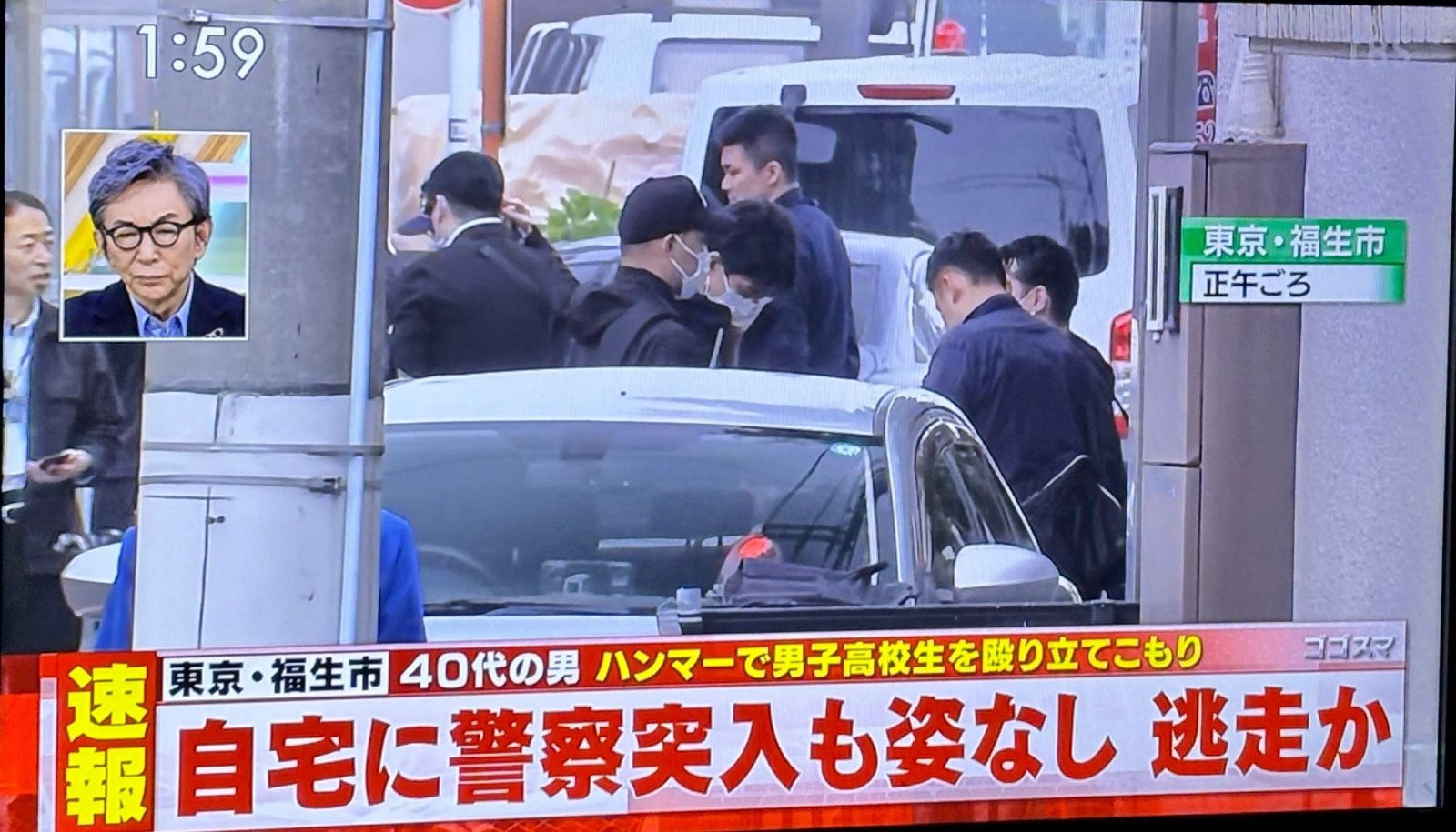 けさ、東京・福生市の路上で40代の男がハンマーで男子高校生を殴るなどして、あわせて8人がけがをしました。男は自宅に立てこもり、さきほど警視庁が突入しましたが、自宅に男の姿はなく、警視庁が行方を追っています。