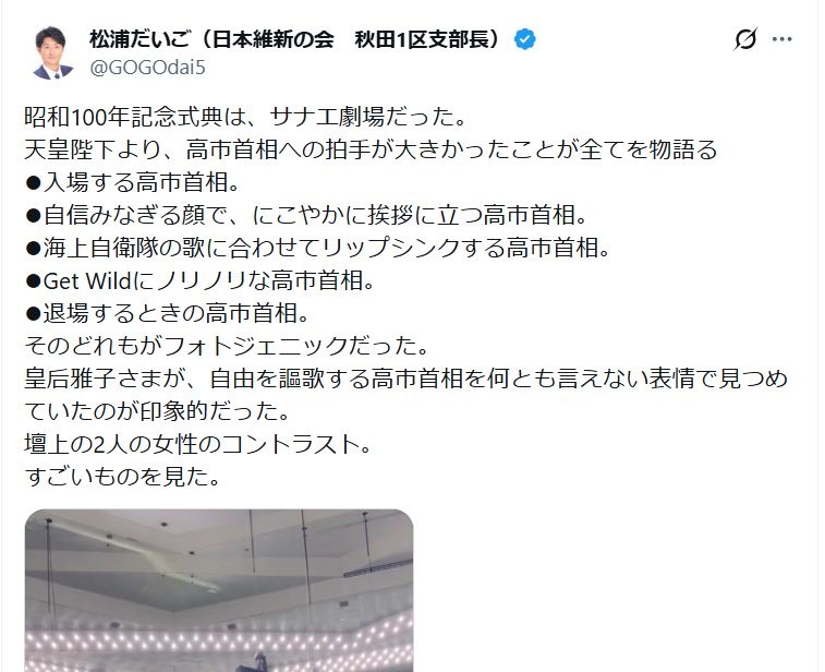 維新の国会議員も高市さんのほうが天皇に相応しいと表明
