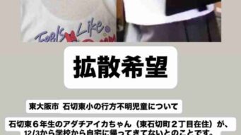 エッヂ 大阪の女子小学生「アダチアイカ」ちゃんが昨日から行方不明に