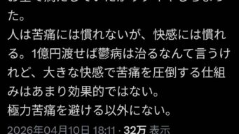 エッヂ 彡(゚)(゚)「鬱病なんて金与えれば直るやろ」←これを1発で論破するポストが話題にwww