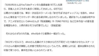 エッヂ 超人気ラーメンYouTuber・SUSURU “所有車から腐敗遺体発見”報道の米国ラッパーとコラボの過去にファン戦慄
